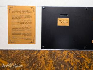 One of the boxes designated for this tzedakah is the large box in the entrance lobby, in which the Rebbe frequently donated tzedakah. He also instructed children who received tzedakah coins from him as he went to prayers to donate the coins in this box, and several times even lifted one of the children in his hands after they were unable to reach the slot of the box.