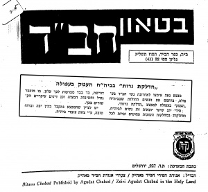 - "All the Candles Should Unite into One Great Torch and Great Fire that will Burn Away the Remnants of the Boundaries of Golus," in the Chayei Rebbi section, Kfar Chabad Weekly 2078, page 52