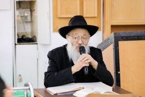 Rabbi Wilshansky at the gathering of 28 Sivan 5755 (1995). Beside him: his father-in-law Rabbi Moshe Ashkenazi, Rabbi Yeshayahu Hertzel and Rabbi Ben Zion Grossman