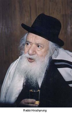 Rabbi Hirschprung was one of the few survivors among Polish rabbis. He was considered one of the greatest experts of our generation in Talmud and Jewish law, which he knew by heart. This was in addition to his sharp understanding in learning, which was expressed in the depth of his sermons and insights. Nevertheless, he was a humble person who took no credit for himself. He pursued peace, was charitable, and was faithfully involved in his community's needs.